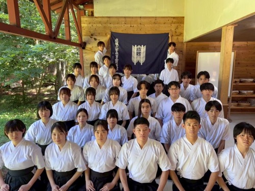 練習中はみんな真剣に弓道に取り組んでいます。弓術を磨くだけでなく、精神を統一・集中させたりと日々内面も磨いております。