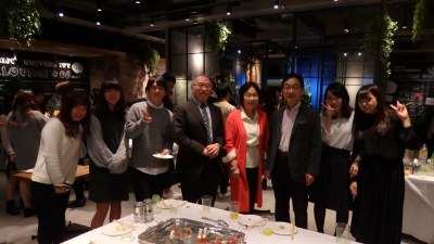 第3部では、3号館学生ホールに場を移して「懇親会2」が開催され、最後には同じ誕生日をもつ教員と学生の誕生会も兼ねる粋な計らいに一同爆笑しました。