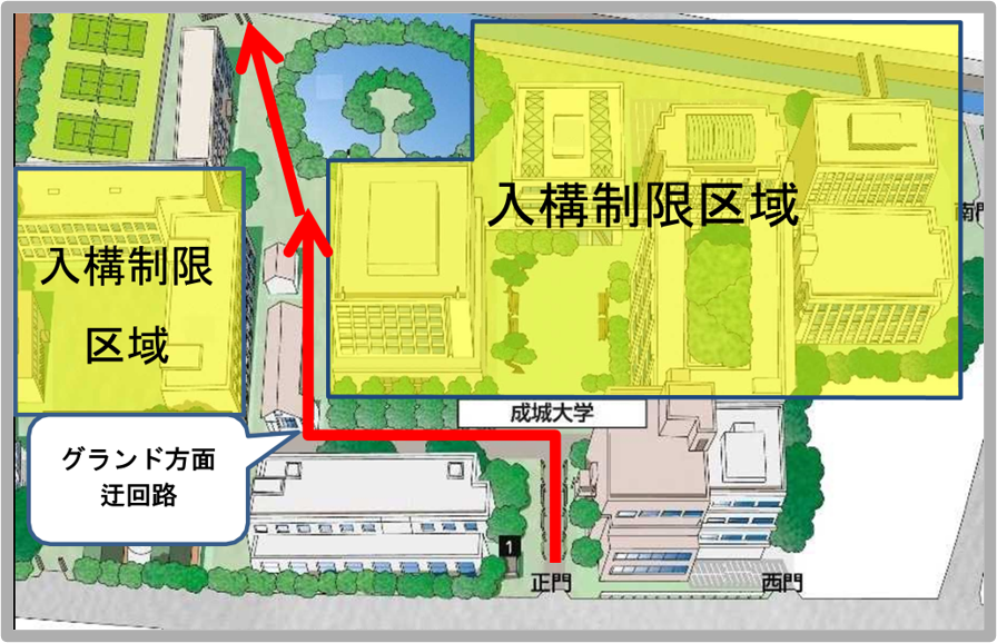 2.入構制限区域:大学構内(校舎、中庭および通路)