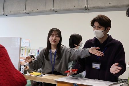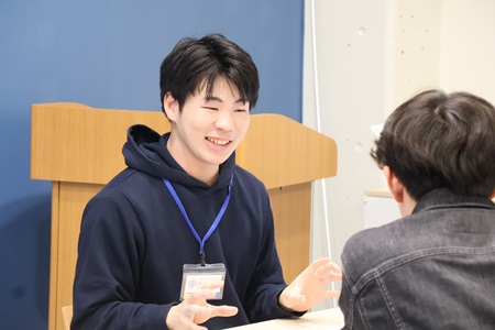新入生の対応にあたるピアサポーターの「在学生コーチ」たちは、事前にカリキュラムや履修方法について所管部署の職員からレクチャーを受けた上で、相談に応じます。大学生になったばかりの1年生は、単位の仕組みなど大学ならではの学び方に戸惑いがある人も多いようです。ある在学生コーチは「仕組みやルールを教えるのはもちろんですが、相談者本人が何を学びたいのか、何に興味があるのかを聞いたうえで、アドバイスしています。」と心構えを語ってくれました。