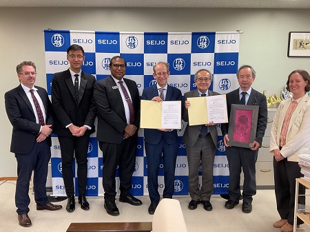 2024年11月7日、本学の学生交換協定校であるカナダのレジャイナ大学からJeff Keshen学長が来学されました。杉本義行学長、川﨑恭治副学長および黒木セーラ特別任用准教授と懇談し、今後の両大学の交流のさらなる発展の可能性について話し合われ、覚書(Memorandum of Understanding)の合意に至りました。