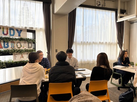 会場では個別相談の時間も設けられ、先輩たちが自身の体験をもとに、留学を目指す後輩の質問に丁寧に応じていました。「現地の授業についていくためにどんな準備をしたか」「ルームメイトとの共同生活で困ったことはあったか」など、実践的で具体的な相談や質問が多く寄せられ、参加者にとって留学生活をより鮮明にイメージできる貴重な機会となりました。