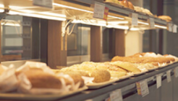 大学食堂棟地下1 階にあるベーカリー&カフェ「SEIJOちかぱん」。最新のコーヒーマシンで淹れるコーヒーと、焼き立てのパンが楽しめます。
